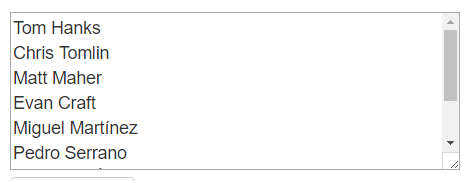 El formato para añadir los nombres a la aplicación debe ser uno en cada linea, como en el ejemplo que aparece por defecto: